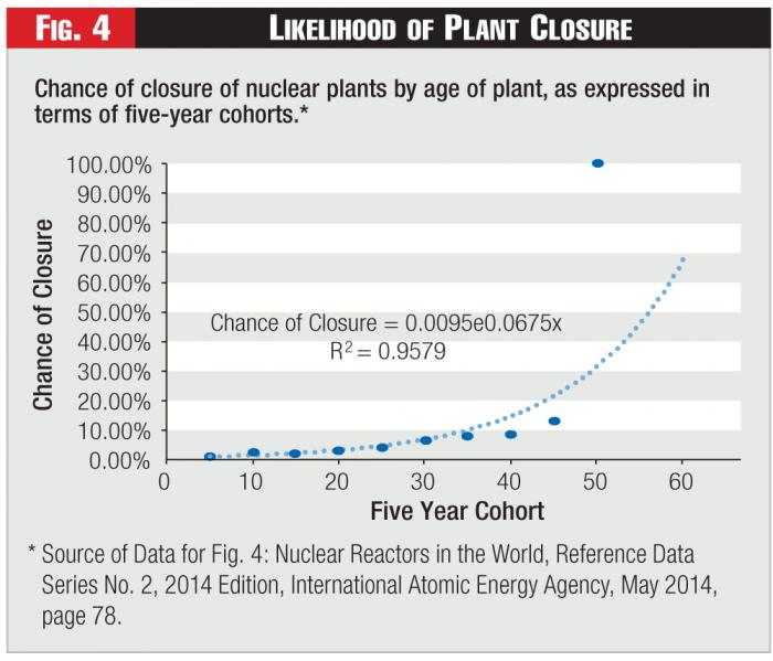Given the complexity of the average nuclear station and the multiplicity of designs and technologies, a detailed forecast of life expectancy on a case-by-case basis is difficult. It is easy, however, to approach the question from the total population of reactors and then work back to specific estimates. In fact, this is exactly the approach undertaken in life expectancy estimates in demographics. The primary determinant of life expectancy is the survival rate for a specific cohort.