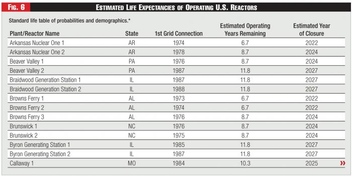 The question of the life span of these resources is now highly pertinent, given efforts to subsidize nuclear units in New York and Illinois. Are these subsidies for five years or 30 years? Obviously, the expected lifetime of these units is going to have a central bearing on the debate.