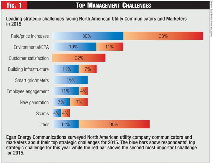 My experience and my professor's words floated back to me recently as I prepared Budgets, Gadgets & Price Increases, my company's 2015 survey of utility company communicators and marketers. One of the questions we asked respondents concerned their top strategic challenges for 2015. Figure 1 summarizes the results for that question.