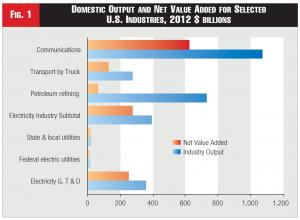 figure 1 - Domestic Output and Net Value Added for Selected U.S. Industries, 2012 $ billions