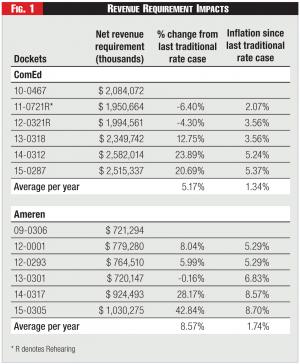Since the annual formula rate process to set electric delivery charges began in 2012, rate cases are shorter (eight or nine months, versus an average of 11.5 months), occur on a set yearly schedule, and are more routine than traditional rate cases. Weeks of cross-examination can now take less than half a day, many commonly litigated issues have been resolved, and utility spending on outside counsel has fallen.