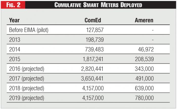 Commonwealth Edison, ComEd, and Ameren Illinois, Ameren, have installed more than two million advanced meters, almost half their goal. Fewer truck rolls and fewer shorter outages have followed grid investments such as distributed automation.