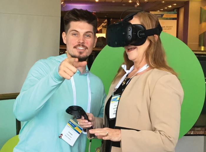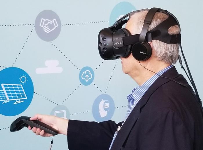 This year's convention of the Edison Electric Institute, June 11-14, 2017, featured a virtual reality demonstration that anyone could try. Including EPRI's senior vice president Anda Ray and PUF's own Steve Mitnick, shown in these pictures. Anda and Steve traveled through a smart city of the future. With Anda in some of the pics is the VR developer Kristian Bouw of Notion Theory. See more pictures here.
