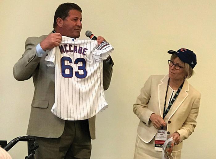 Lead image: Commissioner Bill Kenney of the Missouri Public Service Commission is awarding a Chicago Cubs world series champion jersey to former Commissioner Ann McCabe of the Illinois Commerce Commission. Commissioner Kenney knows a thing or two about sports. He was an NFL quarterback in the eighties. While with the Kansas City Chiefs in 1983, he went to the Pro Bowl, after completing over three hundred yards passing in four consecutive games.