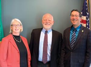 Throw CETA in with all the usual work a Commission has to do, and you know they are busy. But Commissioners and Staff kindly took time to spend a day with PUF and let us see their beautiful new, energy efficient office building in Midtown Lacy. So-named some six months ago to denote the many state agencies in the area. It's about a five minute drive to the capitol of Olympia, and we were fortunate to attend a hearing there too and see Chair David Danner testify.