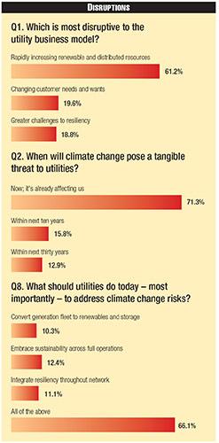 As expected, a vast majority of utilities recognize that climate change is a disruptive force already threatening current business models, 71 percent. The percentage of respondents acknowledging that climate change is posing a tangible threat increased by two percentage points over last year's survey, 69 percent. We expect that this will continue to increase going forward as destructive weather events will occur more frequently and utilities are taking a lead role in the decarbonization of our economies.