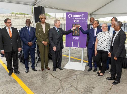 Among those at the ceremony on May 24 to switch on the microgrid were U.S. Senator Dick Durbin; U.S. DOE Assistant Secretary for Electricity Gene Rodrigues; City of Chicago’s Chief Operating Officer John Roberson; Illinois Commerce Commission’s Commissioner Stacey Paradis; and ComEd CEO Gil Quiniones.