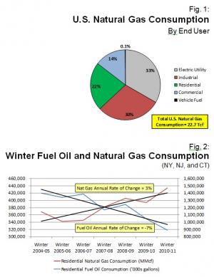 For example, in the Northeast where there is significant consumption of heating oil during winter months, cheap gas has been driving customers to convert their heating units to natural gas over the five years since the peak of gas prices during 2005 and 2006. Figure 2 (see p.2)provides an indication of this fuel switching trend in the residential customer segment as a steep decline in fuel oil consumption during the winter months has been coupled with a corresponding increase in natural gas consumption over that same period.