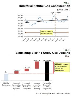 The largest natural gas consumer in the U.S. is the electric power industry where 2010 consumption levels around 7,400,000 MMcf accounted for more than 30 percent of total U.S. consumption (see Figure 1 on p.2). Now, new generation build and pending EPA regulations have the potential of driving the closure of many coal facilities across the United States. Industry estimates are in the range of 60 GW of capacity that may be retired due to these regulations. The most likely alternative in the short and medium term would be to shift this generation from coal to natural gas.