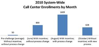 (2) In 2008, the call center enrolled 1,350 customers during the contest. In 2009, they increased that number to 1,626. In total, the two call center contests enrolled 2,976 customers—639 enrollments less than the 2010 contest alone.
