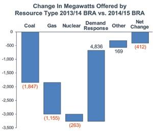 However, there was a surprise in the way these effects interplayed, as well as in the contribution of demand response into the dynamics of the market. Prior to the auction, analysts expected some amount of old or otherwise dirty coal fired generation to exit the market altogether, and for others to bid high prices to recover environmental capital expenditures required to comply with EPA requirements under the Clean Air Transport (CATR) rule of June 2010 and the National Emissions Standards for Hazardous Air Pollution (NESHAP MACT) rule of March 2011.