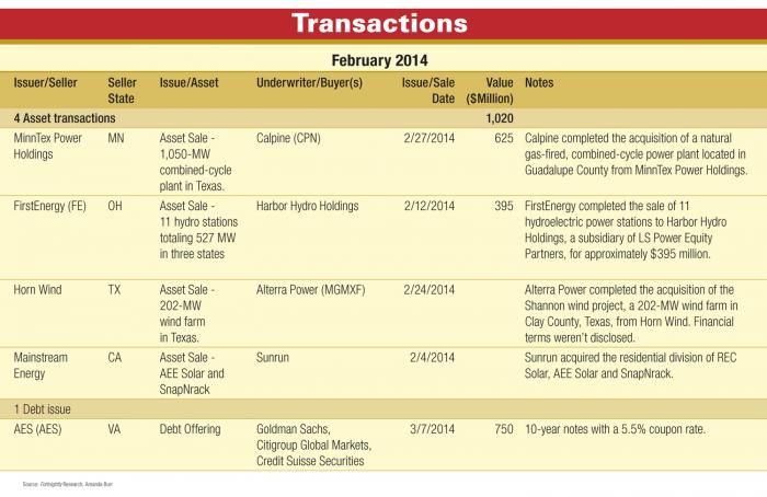 Fortnightly Magazine - April 2014 Calpine acquires Texas combined-cycle plant from MinnTex; FirstEnergy sells 11 hydro stations to LS Power; Alterra Power acquires 202-MW wind farm; plus deals and debt issues totaling $1.8 billion. Tags: MinnTexFirstEnergyHorn WindMainstream EnergyCalpineHarbor Hydro HoldingsAlterra PowerSunrunGoldman SachsCitigroup Global MarketsCredit Suisse Securities