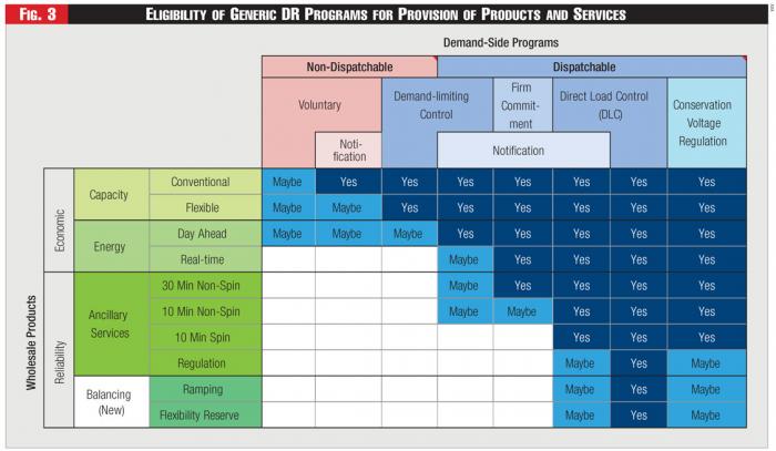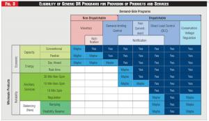 The products a VPP is eligible to provide also depend on DR programs and asset characteristics. Figure 3 schematically shows possible eligibility of assets enrolled in some known DR program types for provision of these services.
