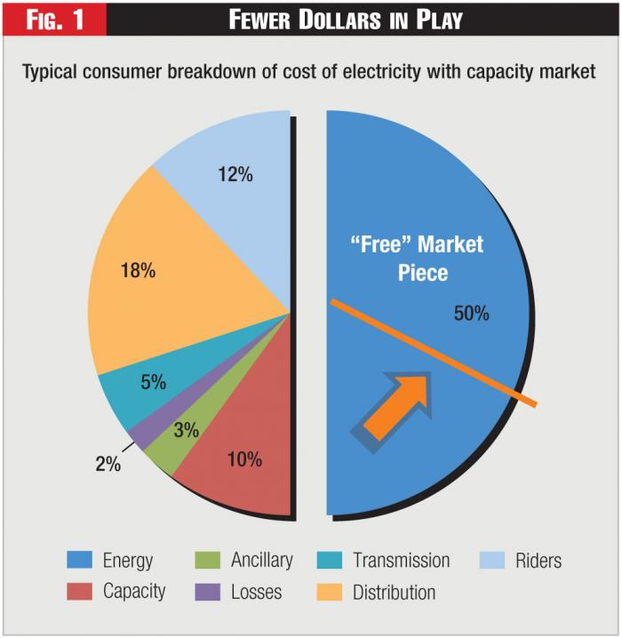 Adding the capacity market also takes dollars out of play from the truly competitive structure - the day-ahead energy market - given that the capacity cost is essentially regulated and socialized within the region. The retail electric provider (REP) will still have multiple options available to acquire energy, but will have no real alternative, other than the regulated capacity market, to meet its imposed requirement for resource adequacy. It's a zero-sum game. The greater the share that the capacity market takes out of total delivered energy cost, the smaller is the piece remaining to the "free" market. Each additional change to the capacity market has typically increased the cost of capacity. The cost of capacity is expected to continue to grow as a percentage of the total cost of electricity. In addition, transmission and distribution charges are also rising. Potentially the competitive piece of electricity could be less than 30 percent of the final bill. All these tweaks and the complexity of the capacity market bring into question the value over a regulated market structure.