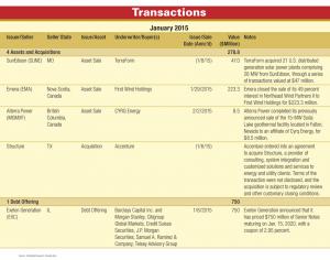 TerraForm acquired 21 U.S. distributed generation solar power plants from SunEdison; Emera closed the sale of its 49 percent interest in Northeast Wind Partners II to First Wind Holdings; Alterra Power completed its sale of its Fallon, Nevada geothermal facility to an affiliate of Cyrq Energy; Accenture agreed to acquire Structure, a provider of consulting, system integration and customized solutions and services to energy and utility clients; and others.