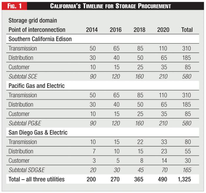 In October 2013, the California Public Utilities Commission - having armed itself with a transparent process for evaluating storage's ability to help meet its renewable energy targets and strategy tools to assess the technology's economic viability - voted 5-0 to mandate adoption of 1.325 GW of storage over a seven-year period (by 2020) on the combined systems of the state's three investor-owned electric utilities. (Calif. PUC Decision 13-10-040, Oct. 17, 2013.)