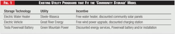 While co-ops are in the process of introducing "community storage" as a program concept to the broader stakeholder community, many programs that meet the definition are active throughout the country, and additional innovative programs that fit within the framework are rapidly emerging. Readily available opportunities for community energy storage programs are electric water heaters and electric vehicles, which can provide storage services to the grid without any perceptible impact to the consumer's hot water or transportation needs.1 Cost-effective opportunities will likely increase with premises-based battery systems and other behind-the-meter technologies with storage characteristics.