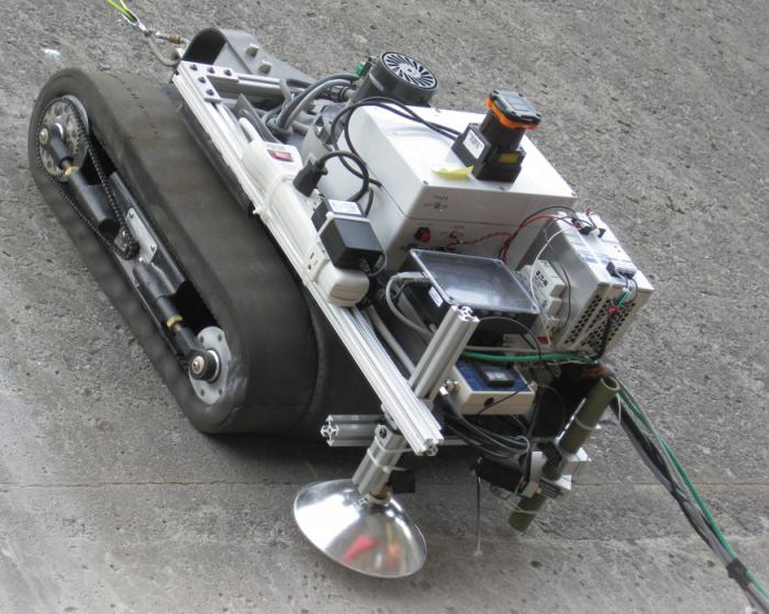 A robotic inspection system, in contrast, would eliminate the need to use scaffolding or rappelling for routine structural evaluations, eliminating the associated setup challenges, time requirements, costs, and safety hazards. Its payload of advanced instrumentation would allow examination of the interior of concrete structures to locate voids, cracks, rebar corrosion, and other internal defects.