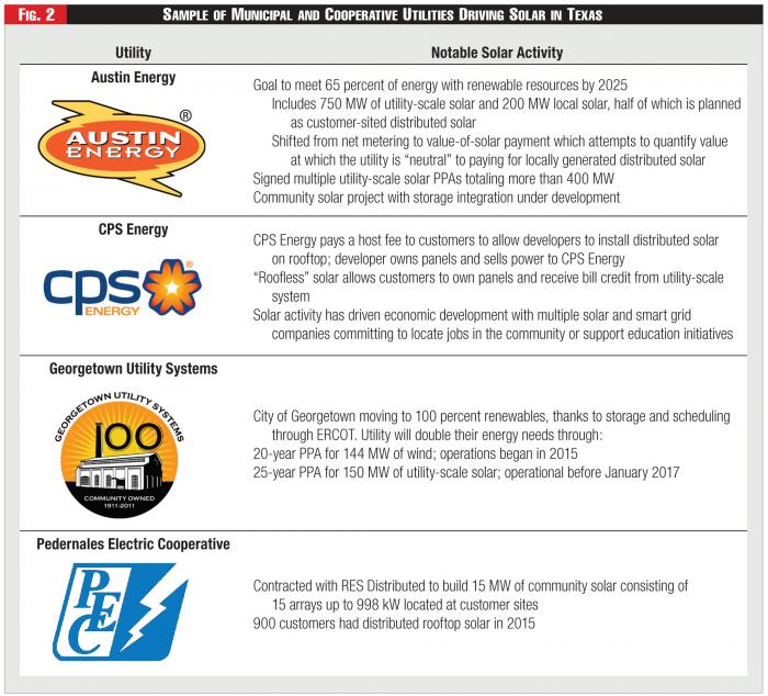Figure 2 - Sample of Municipal and Cooperative Utilities Driving Solar in Texas