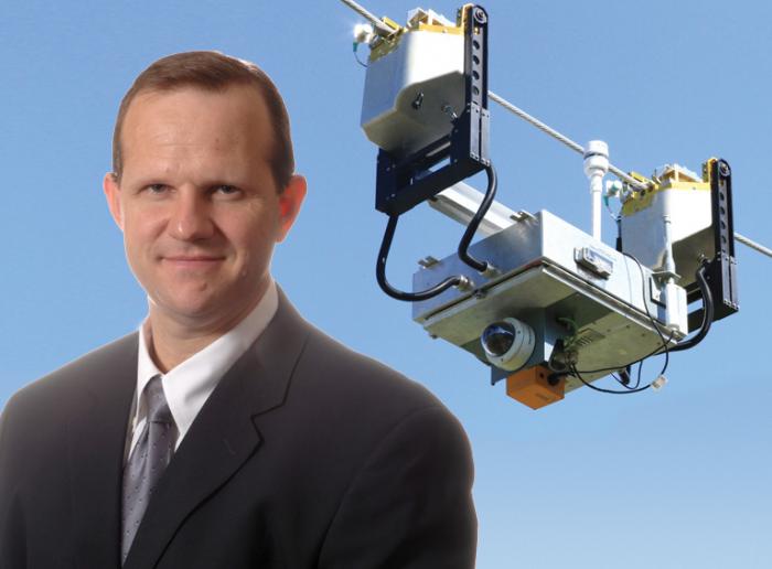 EPRI’s Andrew Phillips and his line crawling robot Ti.