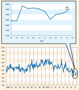 November’s 1.33 percent was tied for the seventh lowest month in history, going all the way back to January 1959. The lowest month in history was earlier this year. Actually, this was a tie too.