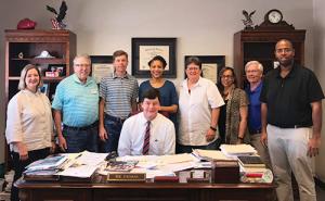 Arkansas PSC Chair Ted Thomas sitting. Standing behind him, from left to right, Valerie Boyce, Wally Nixon, Bert Finzer, Commissioner Kim O’Guinn, Cindy Ireland, Beryl Akins, Ron Garner, Regis Powell.