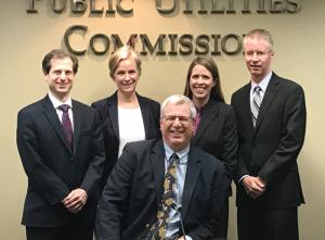 From left to right, Minnesota PUC Commissioner Dan Lipschultz, Chair Nancy Lange, Commissioners John Tuma, Katie Sieben and Matt Schuerger.