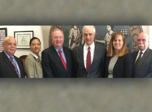 From left to right, members of the North Carolina Utilities Commission: Commissioners James Patterson, ToNola Brown-Bland and Lyons Gray, Chair Ed Finley, Commissioners Charlotte Mitchell and Daniel Clodfelter.