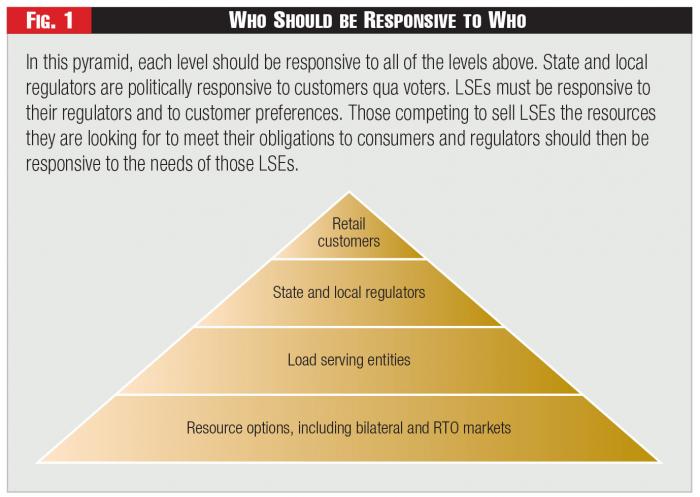 The Commission's order in the Advanced Energy Economy case makes sense only if the RTO markets truly are at the top of the pyramid. If, however, the retail customer is at the top of the pyramid, then RTO markets should be designed to facilitate LSEs' ability to serve those retail customers. And the relevant authority should be the entity deciding whether those customers are best served by LSE or third-party aggregation of behind-the-meter resources.