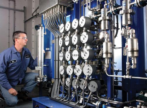 Innovative pre-cooling technologies for hydrogen dispensing, materials-based storage designs to increase capacities at lower pressures, a process for accurate filling of high-pressure hydrogen cylinders used for vehicle fuel storage, and a hydrogen compression technology using a free piston linear drive mechanism that dramatically reduces costs are among the successful innovations from the GTI team.