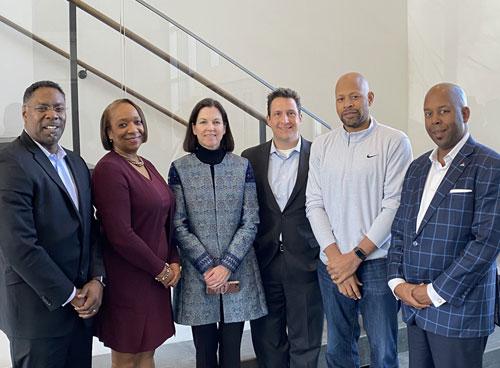 Lead image: At the Burns & McDonnell diversity roundtable, from left to right, Bryan Umstead, supplier relationship management, Duke Energy, Crystal Ross-Smith, director-diversity & inclusion, Ameren, Bridget Reidy, EVP-Exelon & COO-Exelon Business Services, Jim Niemiec, VP-operational services & CPO, Southern California Edison, Kevin Bryant, EVP & COO, Evergy, Johnny Howze, VP-supply chain management, Southern Company.