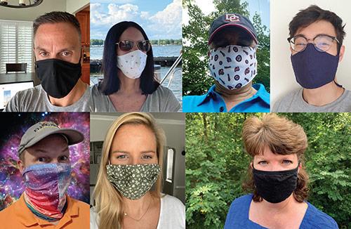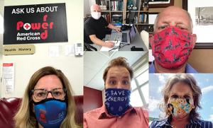 Left: New York PSC Commissioner Diane Burman, masked, donating blood. Middle top: Washington UTC Chair David Danner, masked, at work in his office. Middle bottom: WPPI’s Jake Oelke with a mask message for all of us. Top right: BRG’s Peter Keller in a colorful zebra mask. Bottom right: Alabama Power’s Elizabeth Brown with a Disney themed mask.