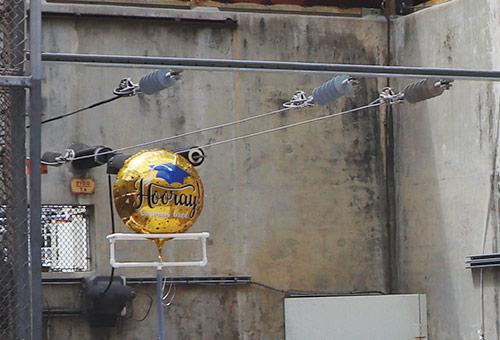 Normal foil balloons from a nearby retail store were also tested in the same configuration, and immediately caused an electrical short.