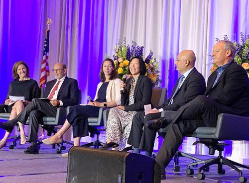 At NARUC's Summer Policy Summit, Jim Robb is second from the left of this general session panel, moderator and NARUC President Judy Jagdmann of Virginia is left of him, and to his right is Google's Briana Kobor, Edison International's Carolina Choi, PJM's Manu Asthana, and Itron's Don Reeves.