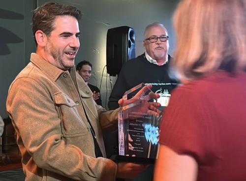 Image: NASUCA President and Michigan Consumer Advocate Michael Moody presented the Robert F. Manifold Lifetime Service Award to Iowa Department of Justice Attorney Jennifer Easler, with NASUCA Executive Director David Springe looking on.