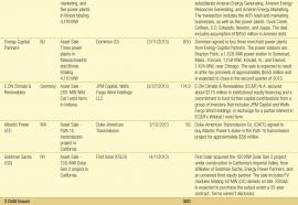 Dominion agreed to buy three merchant power plants from Energy Capital Partners; First Solar acquired the 150 MW Solar Gen 2 project; Dynegy subsidiary Illinois Power Holdings will acquire Ameren Energy Resources and three subsidiaries; and others ...
